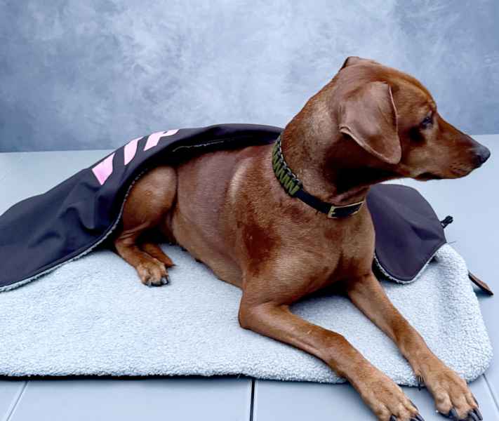 Wenn es regnet oder kalt ist, benötigen unsere Vierbeiner mehr Fürsorge als sonst. Viele mögen kein Regen oder frieren schnell, weil sie wenig Fell oder kein Unterfell haben. Für meine Stina trifft beides zu. Seit Jahren nähe ich ihre „Schutzkleidung“. Sie ist leicht, atmungsaktiv und ihr Bewegungsdrang wird nicht eingeschränkt. Sie fühlt sich wohl und ich bin glücklich.