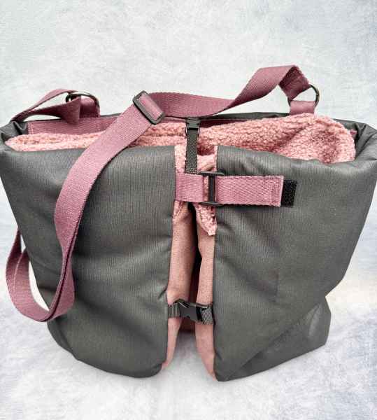 Die Rucksacktasche kann mit wenigen Handgriffen vom Rucksack zur Crossover-Tasche „umgebaut“ werden. Beide bieten viel Platz. Die Schultertasche hat einen geteilten Innenraum, eine Seite für dich, die andere für deinen Hund. Im Innenraum sind mehrere Innentaschen und ein Flexi-Gurt für eine Wasserflasche. So kannst du alles sicher verstauen auch wenn´s mal länger dauert.